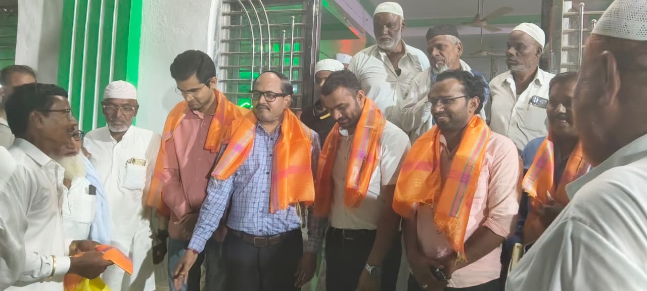 दावत-ए-इफ्तार मध्ये बंधुभावाचे दर्शन जांभळी ता 13 मुस्लिम बांधवांच्या पवित्र रमजान महिन्यानिमित्त जांभळी येथे दरवर्षी प्रमाणे यंदाही दावत-ए-इफ्तारचे आयोजन करण्यात आले.शुक्रवार रोजी सायंकाळी जांभळी जामा मज्जिद येथे कार्यक्रमास हिंदू मुस्लिम समाजबांधवांनी मोठ्या संख्येने उपस्थित राहुन बंधुभावाचे दर्शन घडवले. रमजान महिन्यात रोजा सोडण्याच्या वेळी सर्व समाजातील नागरिकांनी एकत्र येऊन सामाजिक ऐक्य आणि सलोखा वृद्धिंगत व्हावा या उद्देशाने या इफ्तार पार्टीचे आयोजन करण्यात आले होते.यावेळी उपस्थितांनी एकत्रितपणे इफ्तार करत परस्परांना शुभेच्छा दिल्या.अशा उपक्रमामुळे समाजात ऐक्य,बंधुता आणि सौहार्दाचे वातावरण अधिक दृढ होत असल्याची भावांना आयोजकांनी व्यक्त केली.या कार्यक्रमाचे आयोजन वरद हाॅस्पिटल ॲण्ड आय.सी.यु बिडकिन संचालक डॉ सुरेश जंगले सर, डॉ.जागृती जंगले यांच्या पुढाकारातून करण्यात आले.यावेळी उपस्थित डॉ.शाम हिवरकर, डॉ.मोहन कोल्हे, डॉ. असलम पटेल, डॉ. युसूफ शेख, गरड,शाकेर शेख,सुखदेव सोनवने, ज्ञानेश्वर भवर,शुभम फलके,कृष्णा तांबे,अक्षय महाजन, नवनाथ गरड, निलेश राजपुरे यांच्यासह गावातील मंडळी व गावकरी उपस्थित होते.